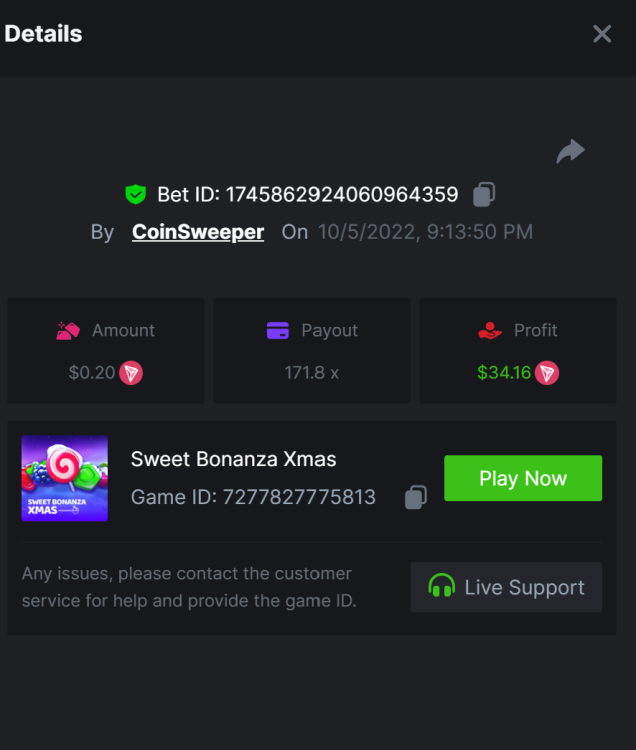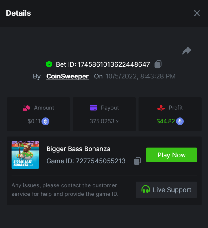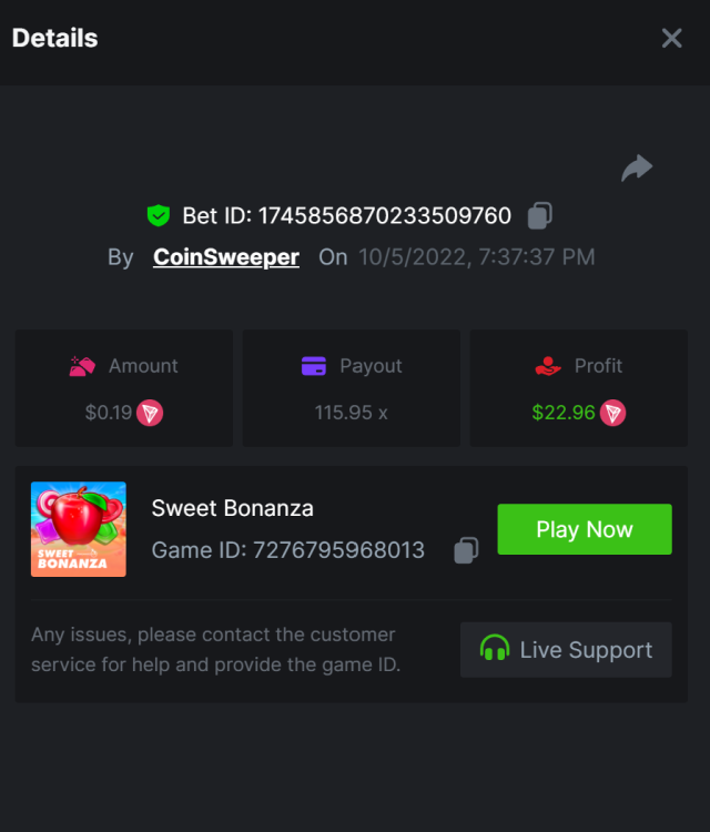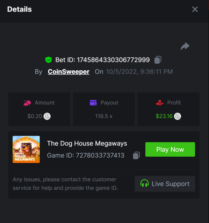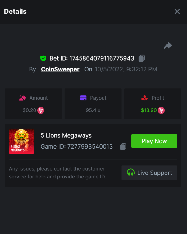 $5,000 Top Tier Pragmatic Play Multiplier Battle!CoinSweeper replied to Niobium's topic in Past Challenges https://bc.game/#/sd/10UF8OAHLT0XLF - 375.0253x https://bc.game/#/sd/10UF45UTXGV6DV - 137x https://bc.game/#/sd/10UF4L9PN0PPUB - 115x https://bc.game/#/sd/10UF5LQ2USBBBN - 110x https://bc.game/#/sd/10UF9BZOYZUTCJ - 523.9 x https://bc.game/#/sd/10UFAK7HTDUWPF - 171.8x https://bc.game/#/sd/10UFBOWUNK3DAR - 95.4x https://bc.game/#/sd/10UF7SLOKLRTOZ - 50x - Bounty https://bc.game/#/sd/10UFBXW23LF9JN - 116.5x https://bc.game/#/sd/10UFCM2WB6JWUR - 190x https://bc.game/#/sd/10UFD5FS7F0QVN - 136.85 https://bc.game/#/sd/10UFDPDK1Q83KJ - 150x https://bc.game/#/sd/10UFE79T53LGR7 - 302.7x
