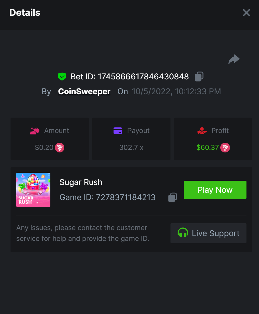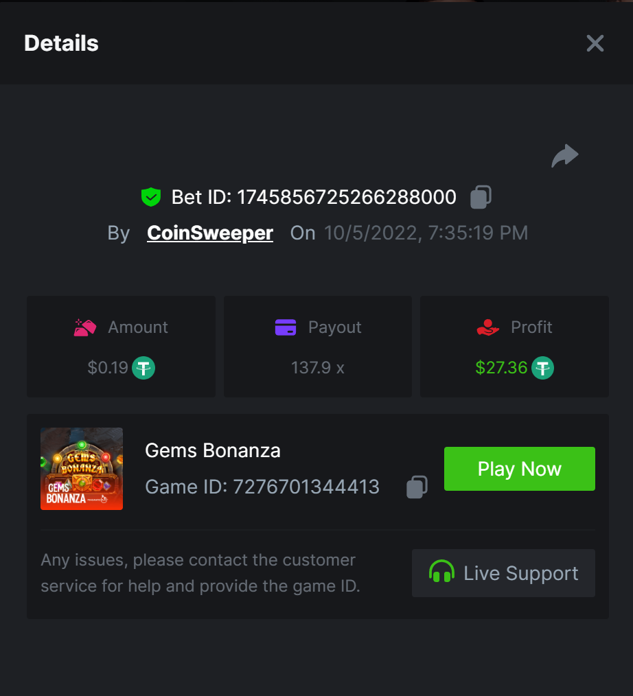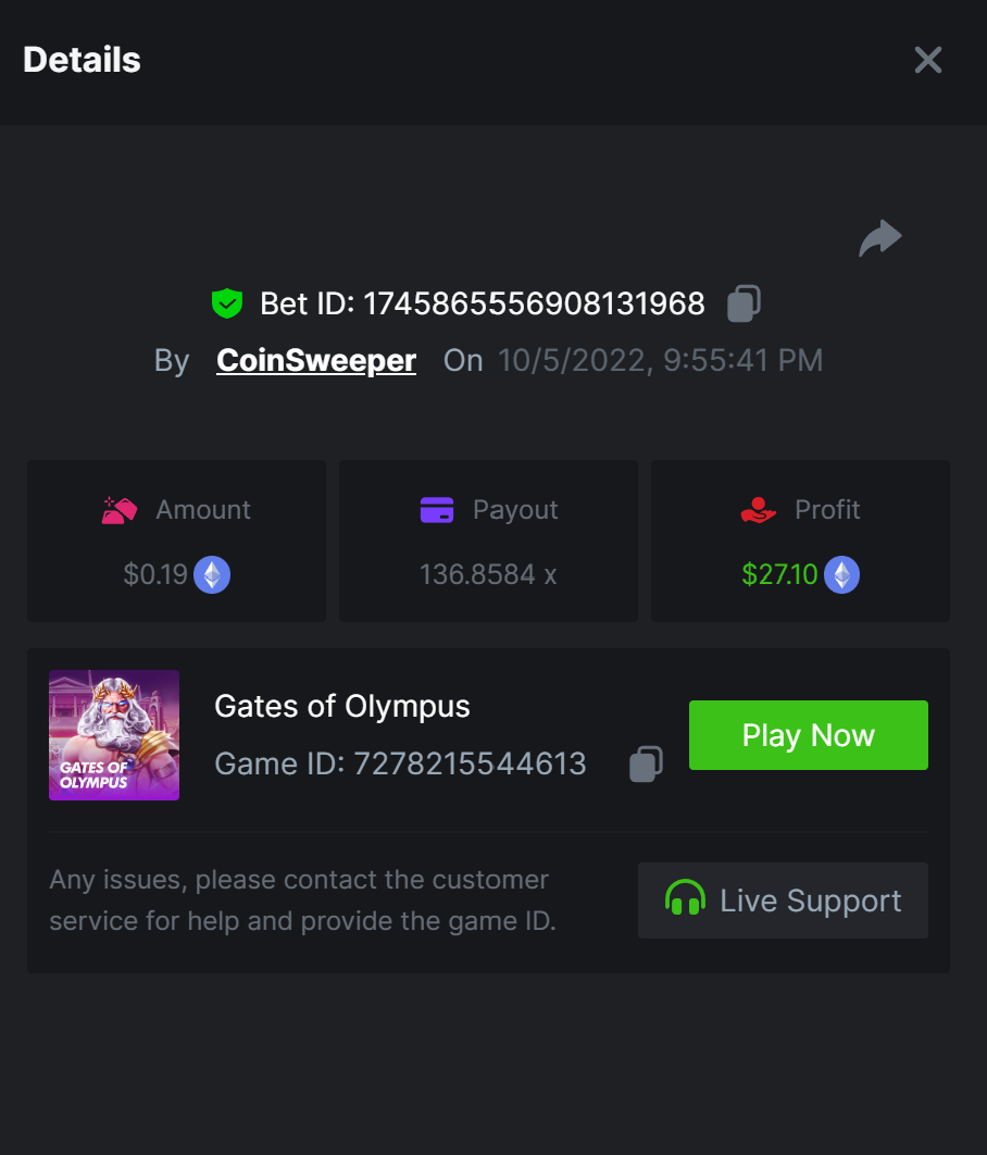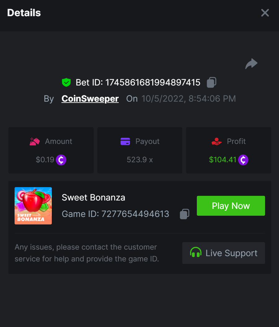 $5,000 Top Tier Pragmatic Play Multiplier Battle!CoinSweeper replied to Niobium's topic in Past Challenges https://bc.game/#/sd/10UF8OAHLT0XLF - 375.0253x https://bc.game/#/sd/10UF45UTXGV6DV - 137x https://bc.game/#/sd/10UF4L9PN0PPUB - 115x https://bc.game/#/sd/10UF5LQ2USBBBN - 110x https://bc.game/#/sd/10UF9BZOYZUTCJ - 523.9 x https://bc.game/#/sd/10UFAK7HTDUWPF - 171.8x https://bc.game/#/sd/10UFBOWUNK3DAR - 95.4x https://bc.game/#/sd/10UF7SLOKLRTOZ - 50x - Bounty https://bc.game/#/sd/10UFBXW23LF9JN - 116.5x https://bc.game/#/sd/10UFCM2WB6JWUR - 190x https://bc.game/#/sd/10UFD5FS7F0QVN - 136.85 https://bc.game/#/sd/10UFDPDK1Q83KJ - 150x https://bc.game/#/sd/10UFE79T53LGR7 - 302.7x