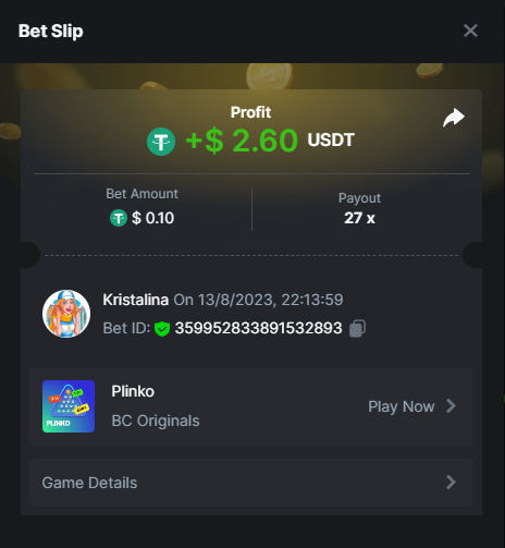 2. Easy 1. Deposit Txid: 4434113e293eb472a7b171d17fbe54cbfb34631824705869716f789ec0040181 2. Instagram: @LincesaMdq 3. Instagram Post: https://www.instagram.com/p/DHXgr4JspCP/?igsh=ZWgwenpqYXVreTF 4. Twitter: @Kristalinauwu 5. Like, retweet & tag: @Kristalinauwu https://x.com/Kristalinauwu/status/1901728054969274750 6. Follow BCGame Facebook: Gisela Gall 7. Limbo: https://bc.co/game-detail/1825513481832927011 8. Sports bet: Ticket ID: 2513820866270339253 9. Arabian Secret: https://bc.co/game-detail/1825439374915515681 10. Sugar Fiesta 1000: https://bc.co/game-detail/1825441146495751971 11. 2FA activated: Medium 1. Deposit TxID: 4d707ead402ff5771e270374a5fc42f5798fdc6bd13d6bf975996a5316cb53ff TxID: 39d9776a52287c2bdc8bea45c1a751ae618ef4976ed8907766ce39ac0603937f 2. Crash: https://bc.co/game-detail/1825546630112045702 3. Plinko: https://bc.co/game-detail/1825430753182757665 4. Roulette: https://bc.co/game-detail/1825527742035924514 5. Starshine Princess 1000: https://bc.co/game-detail/1825598330617384993 6. Stellar Rush: https://bc.co/game-detail/1825601183186807841 7. Keno: https://bc.co/game-detail/1825612623614982433 8: Poker Ways: https://bc.co/game-detail/1825547398747784483 9. Wukong: https://bc.co/game-detail/1825595350268898850 10. Lottery and Porsche tickets: 11. Sports bet Combo Ticket ID: 2512055034057994476 Hard 1. Wheel: https://bc.co/game-detail/1825529693239491107 2. Crash: https://bc.co/game-detail/1825774085023770502 3. CoinFlip: https://bc.online/game-detail/1825620056214876707 4. Stellar Rush: https://bc.co/game-detail/1826242186137422626 5. Plinko: https://bc.co/game-detail/1825459660201698850 6. Limbo: https://bc.online/game-detail/1826864347105905955 7. Hashdice: https://bc.online/game-detail/1826862839661034018 8. Sea of Olympus 1000: https://bc.co/game-detail/1825539068560977186 9. Gold of Olympus: https://bc.online/game-detail/1826344599486243619 10. Duck Hunter: https://bc.co/game-detail/1825605420251285539 11. Sports bet combo Ticket ID: 2513187573116055908
