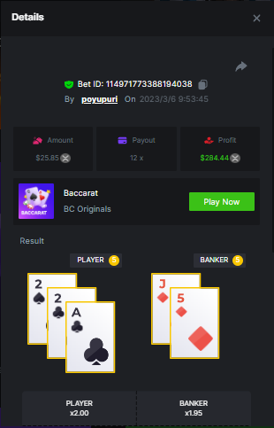 $1,500 Exclusive weekend Baccarat Prestige Challenge #74poyupuri replied to BC_Jack's topic in Past Challenges