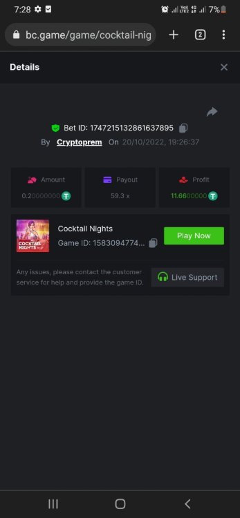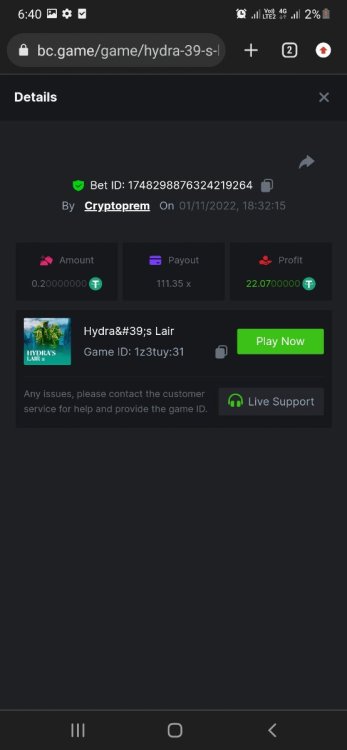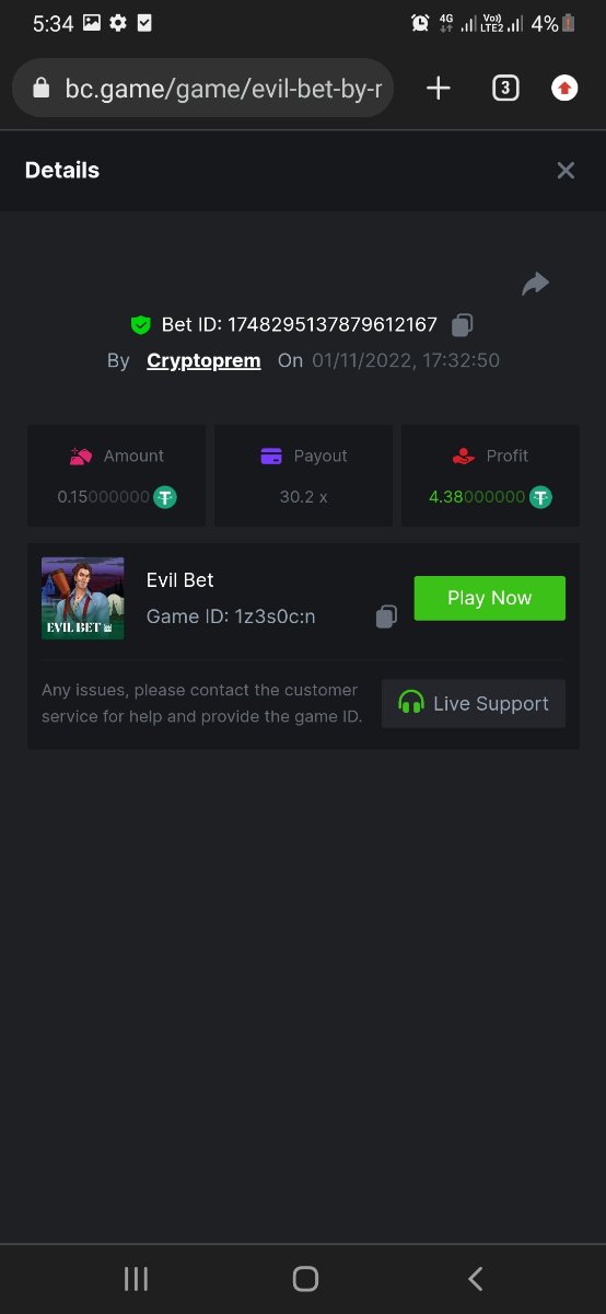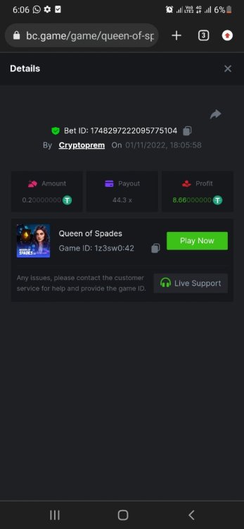 @NiobiumHello please check my bet section and history section is not updating in crash for many players. so its not posible to take betlink and ss of winning bet.