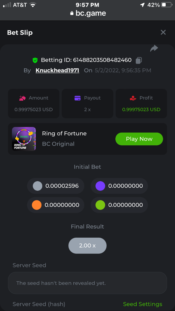 All wins are in order verified by time and date in succession grey first and green last bet was .00002596 BTC = $1.00 USD