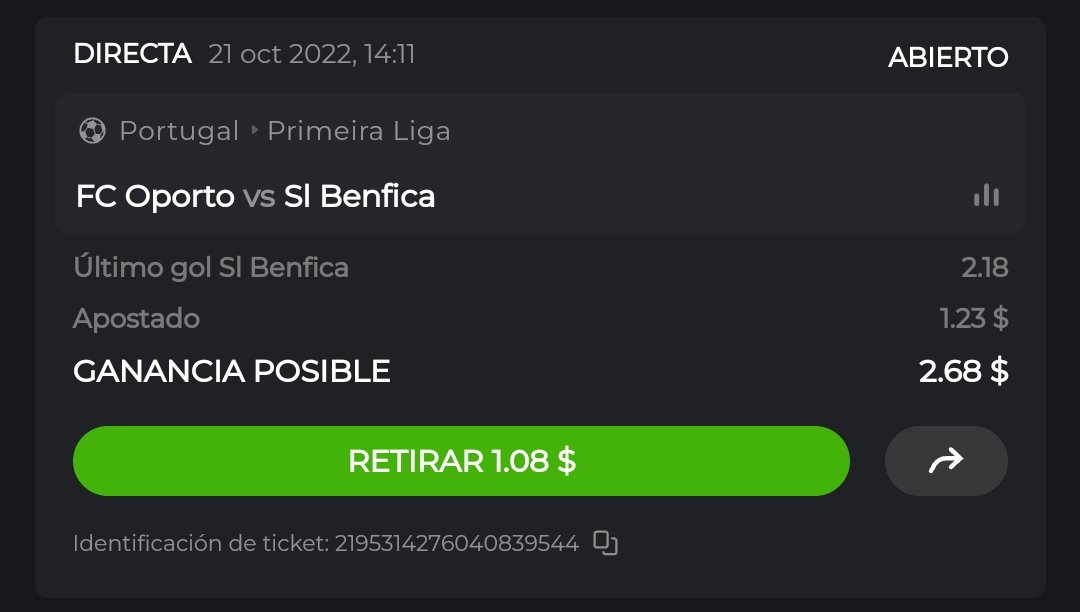 I'm the second bet with $1.22. I bet to win Sl Benfica ?