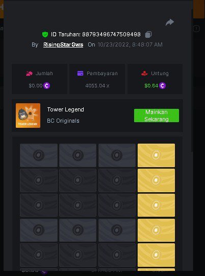 Black Tiger Posted October 23, 2022 Share Posted October 23, 2022 Read Carefully Before Start To Hunt Daily Challenges #47: Tower LegendHunt :Win the highest pay outMin Payout requirement 100xMin Level 4️Duration Starting : Now End time : 23.59 UTC Time How to Join? Make screenshot + paste your bet link + UID or Profile link To get bet link can check HERE Any coin allowedReward Prizes 1st Place....... $7 BCD2nd Place..... $5 BCD3rd Place...... $4 BCD 🎖4th Place......$3 BCD5th - 10th Place......$1 BCD 🏵 Winners will be announcing next day after Roll Point 3 Link to comment Share on other sites More sharing options...