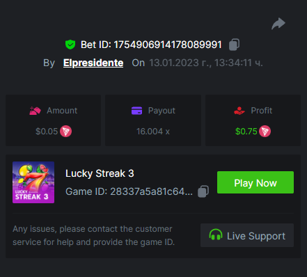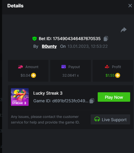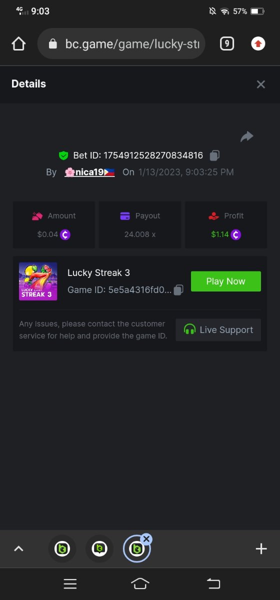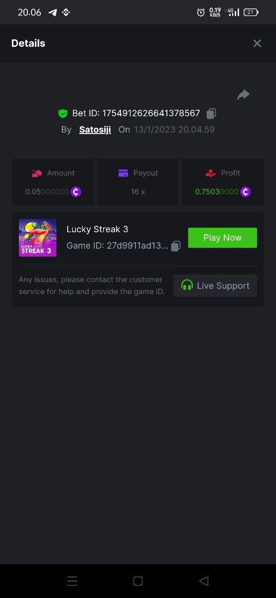 ToughLuck Posted January 13, 2023 Share Posted January 13, 2023 Lucky Streak 3 16 x https://bc.game/#/sd/111ATF306SJCIB Chance Machine 20 21 x https://bc.game/#/sd/111ATB1FMJ32MR Twerk 27.41 x https://bc.game/#/sd/111ATT55WB1QFN Link to comment Share on other sites More sharing options...