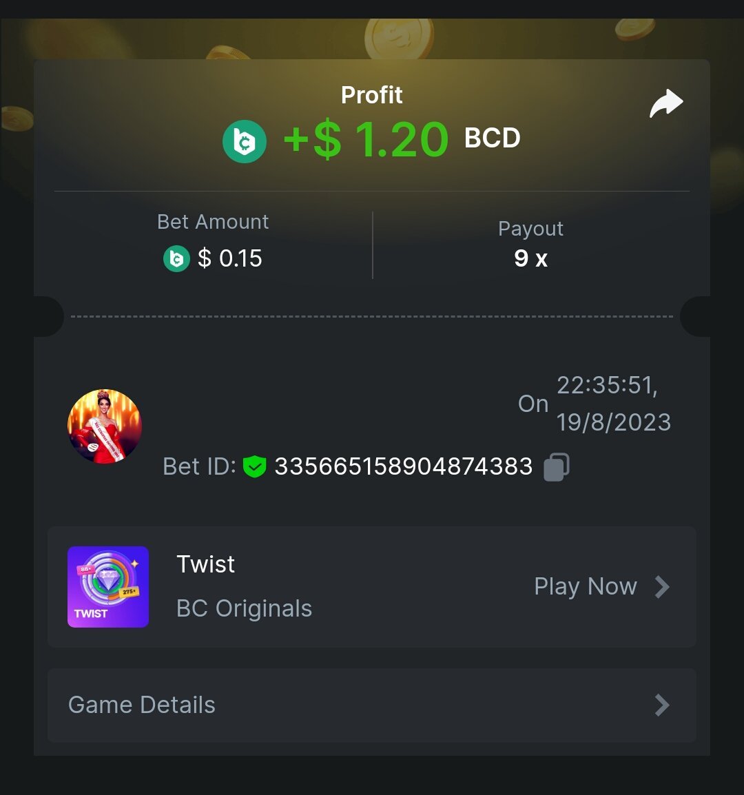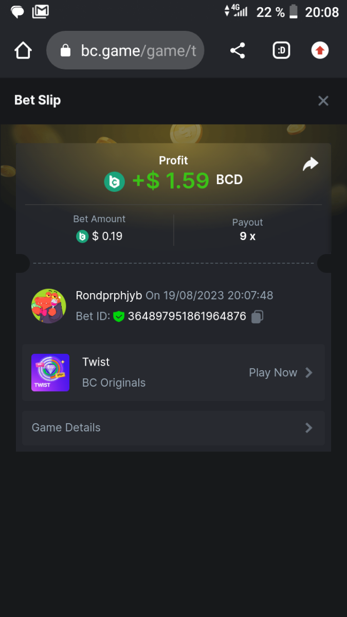 MELODI69 Posted August 19, 2023 Share Posted August 19, 2023 https://bc.game/#/sd/11GB8JGDD5ZXL7 Link to comment Share on other sites More sharing options...