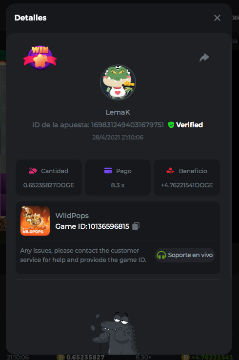 Dudewheresmycoin Posted April 26, 2021 Share Posted April 26, 2021 Here are my best results, so far 1) The Dog House - Game ID 60029370153 - Betting ID: 1698413996243135495 - Payout 243.15x 2) Loco the Monkey - Game ID 60032149910 - Betting ID: 1698415979334267399 - Payout 56x 3) WildPops - Game ID 9992306843 - Betting ID: 1698113370303719808 - Payout 74.70x Link to comment Share on other sites More sharing options...