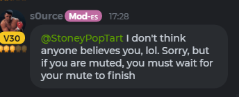 Now I get banned cuz I said s0urce is a shit mod lmao fucking protect their own . Try new mods u dumb fucking idots